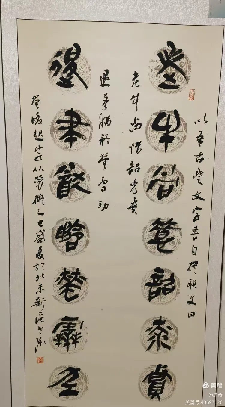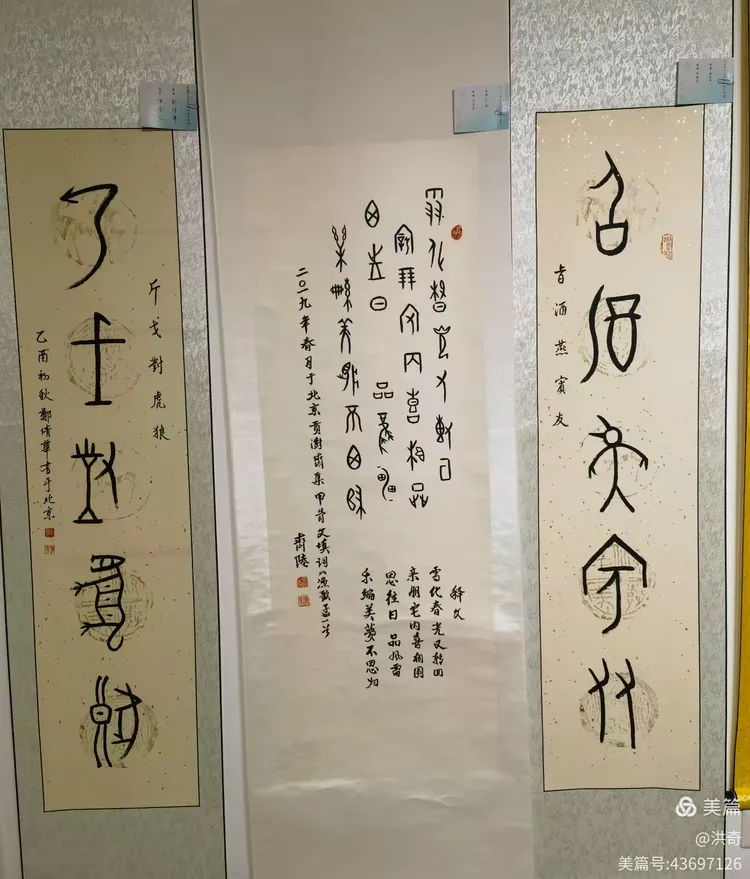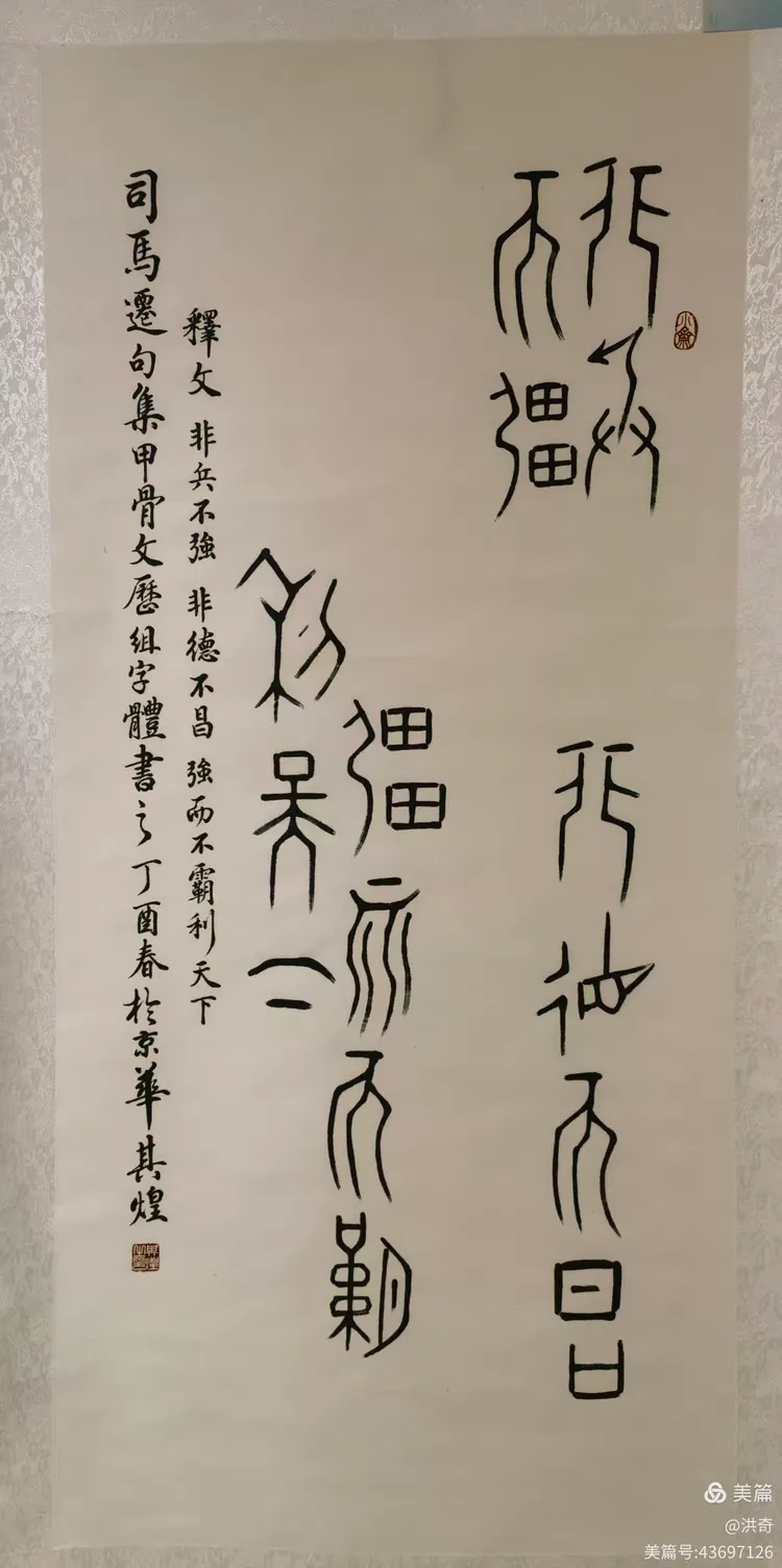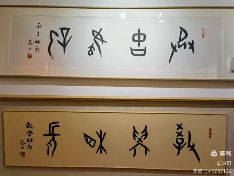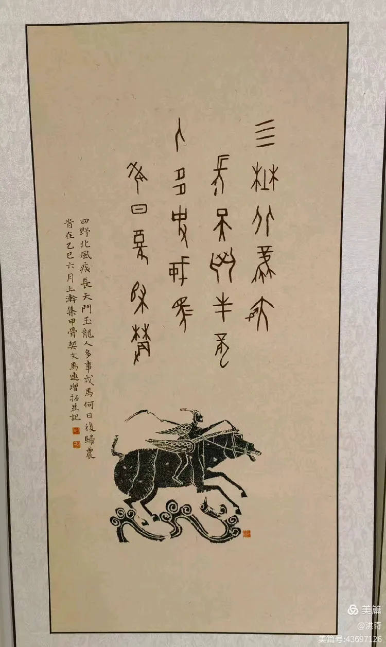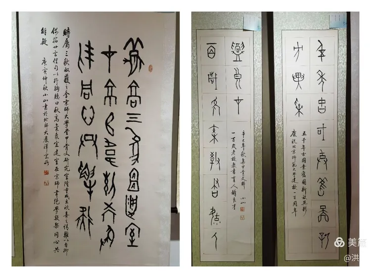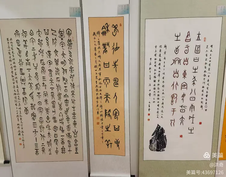 这些参展作品不仅为各界嘉宾与师生搭建起一座跨越三千年的文明对话桥梁,更是助力中华优秀传统文化国际传播的鲜活载体,展示了传统文化在新时代的蓬勃生命力。这次参与创作的作者怀着敬畏殷契、敬畏祖先、敬畏先贤、敬畏优秀文化的心态,在努力追求甲骨文契刻美、原始美、自然美的同时,在笔法、墨法、章法、使用材料等方面进行大胆探索创新,给人以耳目一新之感,使古老神秘的甲骨文焕发勃勃生机。