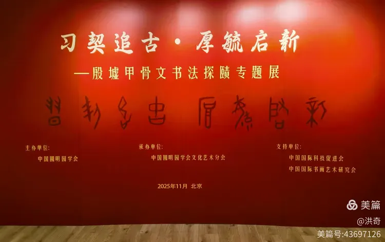 2025年11月16日至22日,“习契追古 厚毓启新——殷墟甲骨文书法探赜专题展”在北京航空航天大学校友之家隆重开展。展览由中国圆明园学会主办,中国圆明园学会文化艺术分会承办,并得到中国国际科技促进会、中国国际书画艺术研究会等单位的支持。学界权威、艺术名家、甲骨文研习者及高校代表共襄盛举,以书法为媒深挖甲骨文文化价值。